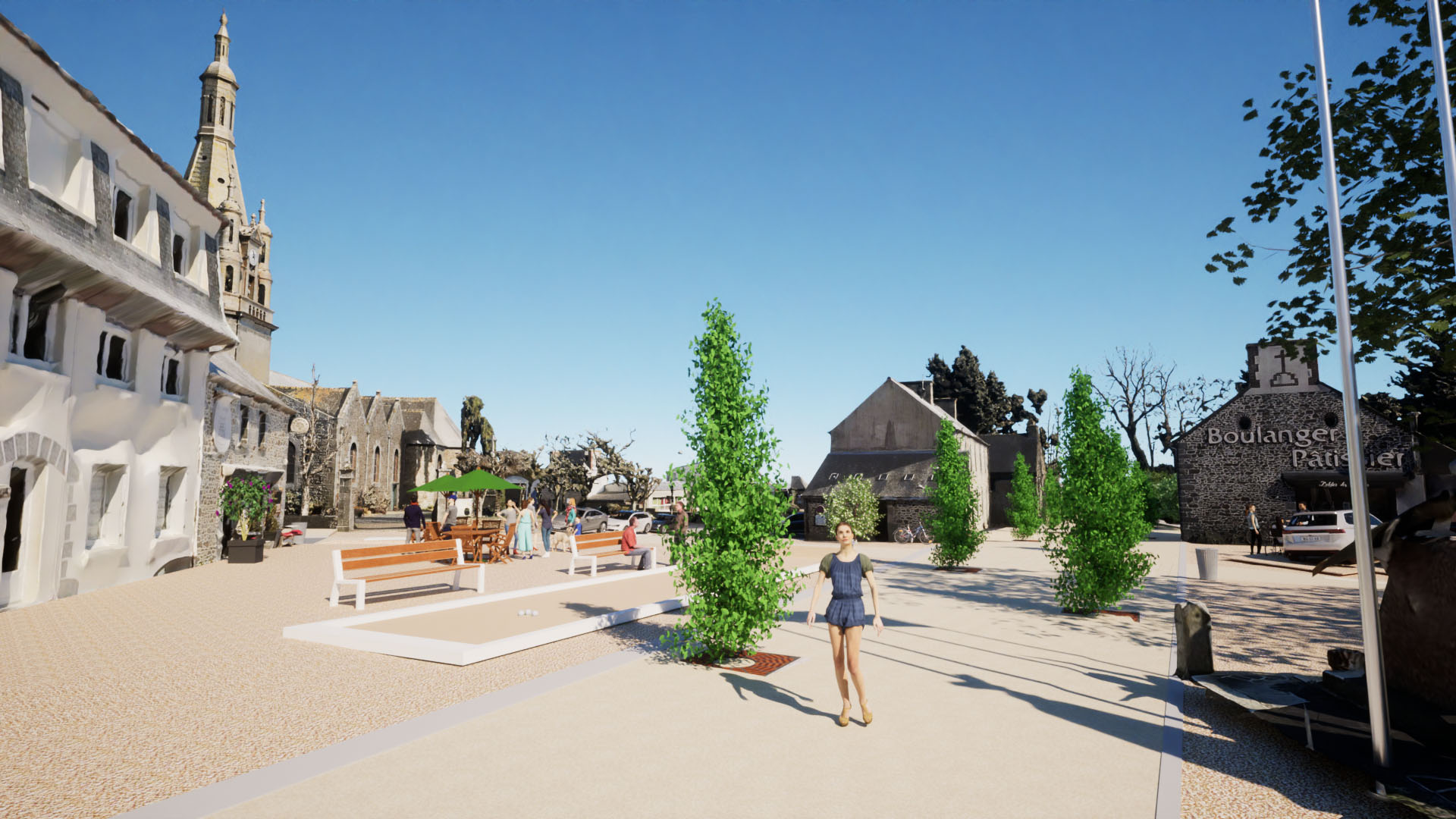 La restitution 3D a servi d’outil de concertation et d’aide à la décision, en rendant immédiatement lisibles les ambitions du projet : un bourg apaisé, vivant, accueillant et cohérent avec l’identité agricole forte du territoire.